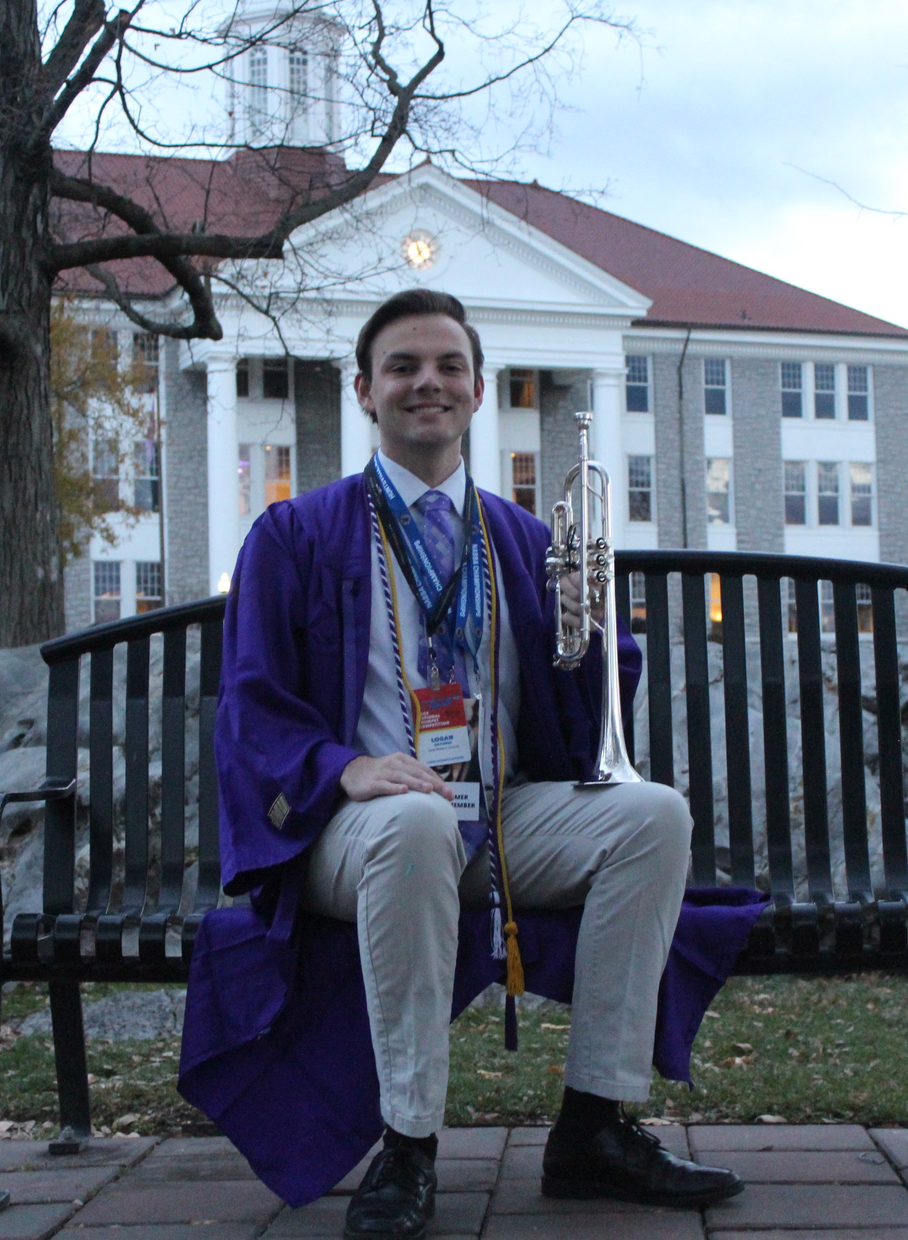 At JMU, Logan was deeply involved in a diverse range of ensembles, including the Concert Band, Symphonic Band, Wind Symphony, Symphony Orchestra, Marching Royal Dukes, and the world-renowned JMU Brass Band. As a standout musician, he served as principal trumpet in the Symphonic Band, Symphony Orchestra, and Concert Band, while holding a front-row cornet position with the Brass Band since his junior year. Logan also had the privilege of participating in masterclasses and special performances led by renowned composers such as Omar Thomas, Michael Markowski, John Mackey, and Frank Ticheli.